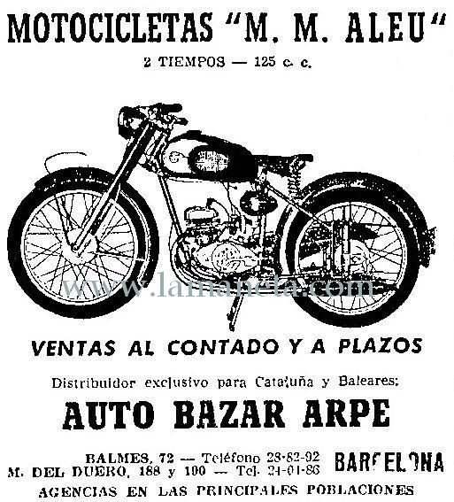 The Aleu family had a mechanical workshop – Manufacturas Mecániques Aleu, SL – with a facility at Carrer de Montserrat, Esparraguera, Catalonia. They produced some parts for motorcycles and made the decision to market a complete machine so, from 1952 to 1956, the Aleu brothers became a motorcycle manufacturer.