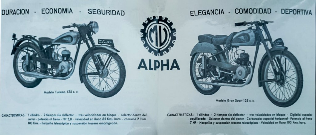 The post-World War II era saw Italian brand Meccanica Verghera Agusta – MV Agusta – plan to expand its sales internationally but they were hindered by Spain’s new import prohibitions and the restrictions on foreign nationals resettling in Spain or creating businesses there. As Alpha had existing production licences, a partnership with Nil Massó was forged and, once the provision of adequate finance had been resolved, MV Alpha was formed in 1948.