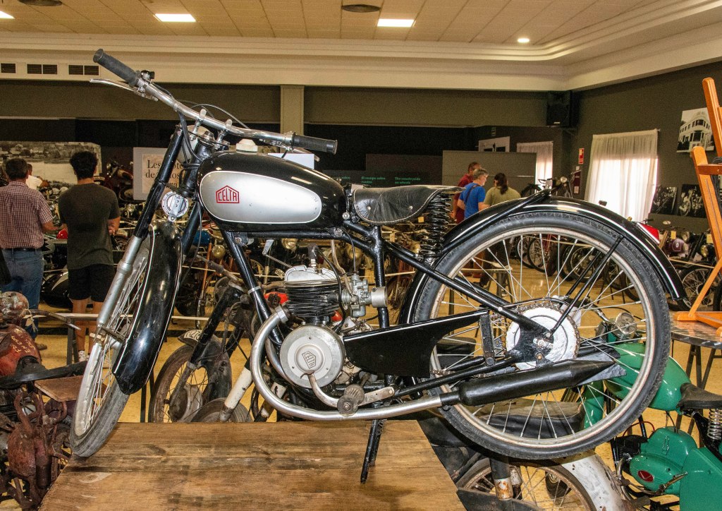 This Celta badged 125cc is unusual in a number of ways. It dates from 1953, so after the loss of the MV Alpha project, and is fitted with a hand operated gear change. The engine has a “Celta” embossed cover to one side. This bike is part of the Sala Santy Collection.