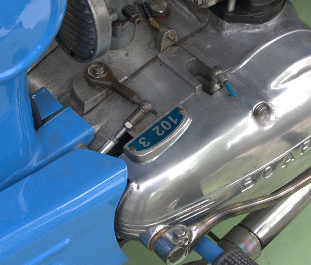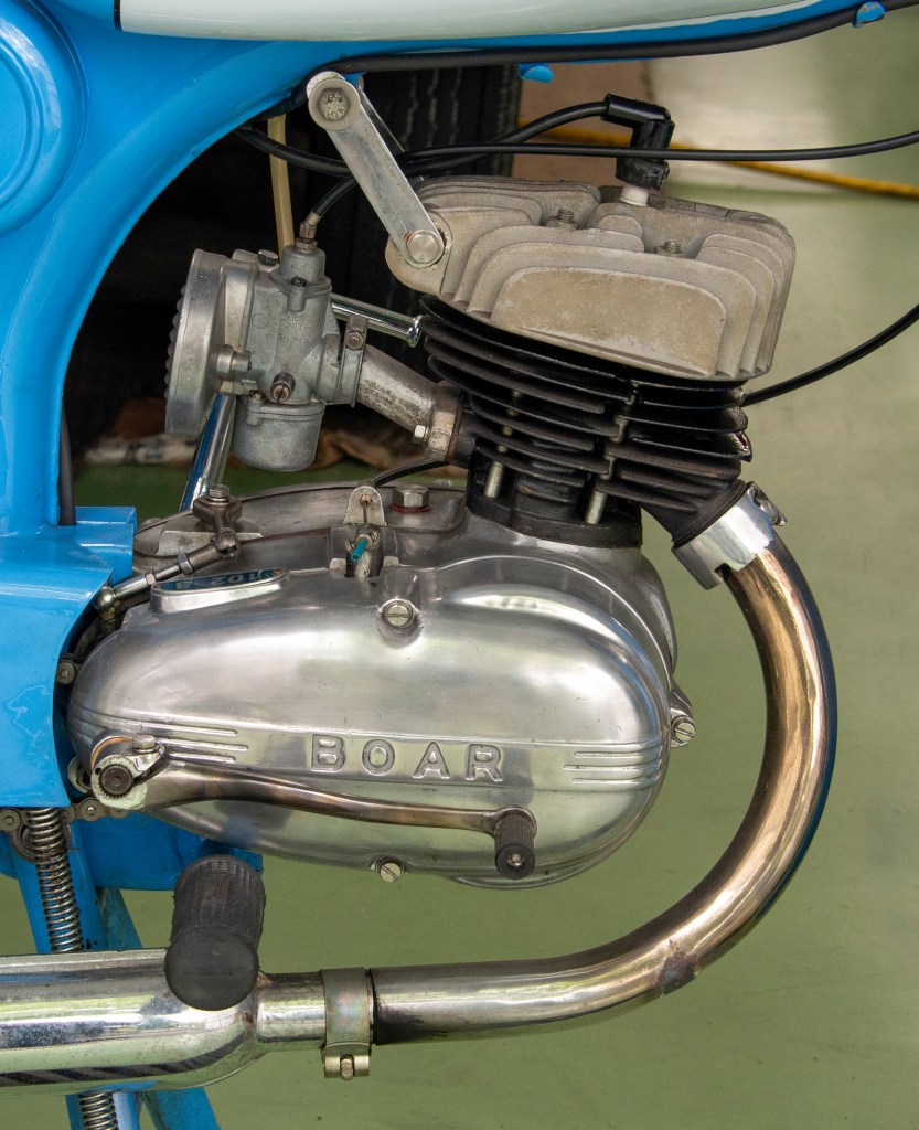 This Boar 125cc is in the Team Lazpiur Collection at Bergara, Gipuzkoa. Talleres Basor, when it had finished motorcycle production in 1964, went on to build clutches for use on boats.