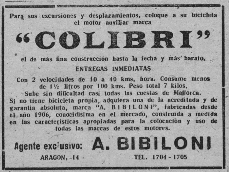Initialy, I need to dispel the common misconception, Colibrí is not an actual bicycle brand but was an auxiliary engine for fitting to bicycles. The engines were produced in the precision engineering workshops of Alberto Bonelli in Durango (Vizcaya) between 1948 and 1952. This was the post-war boom period of demand for worker mobility.