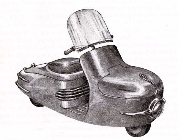 In 1951, Alberto Bonelli made the fateful decision to design and build a Scooter – the Febo. It was very futuristic with a steel monocoque type chassis with an air cooled, two stroke, 125cc horizontal engine. The passenger seat was retractable and the spare wheel was carried under a front hood. The project drained Bonelli of both resources and working capital and, in 1952, he had no alternative but to sell the design for the Colibri auxiliary engines. These were bought by Zugaza – another local firm.