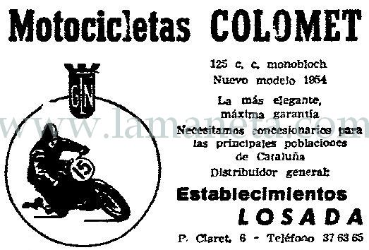 Colomet was a Spanish brand of motorcycle, manufactured in Palma (Mallorca) between 1949 and 1965 although more precise information about the manufacturers has been difficult to obtain. Jaume and Antoni Colomet were brothers who had their own automobile and motorcycle repair shop at Calle Honderos 49-51, in Palma de Mallorca. Over the years, they had begun to manufacture small engines for boats and, towards the end of the 1940s, they had expanded and developed their own moped.