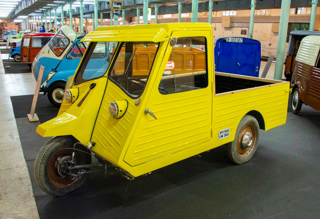 This 1955 PATO three-wheeler was displayed at Gironella (Catalonia) in 2023 in the Microcotxes Exhibition organised by and based around the collection of Claudi Roca i Casas.
