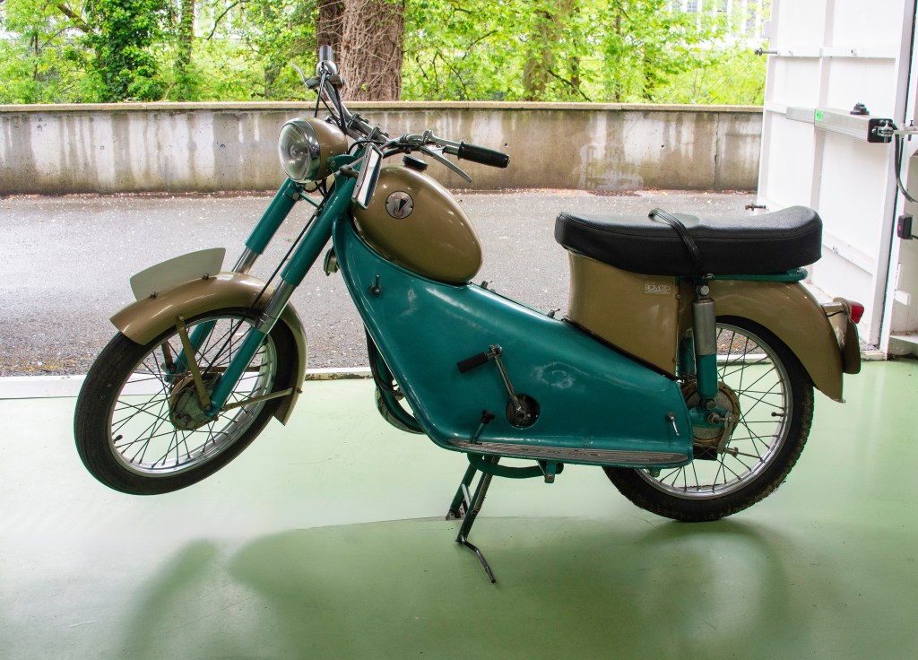 A rare, restored 1959 Derlan Gavilán 125cc. This photograph was supplied by the Derlan and Boar Facebook page and was taken in the old “Talleres Basor” which have only recently been demolished.