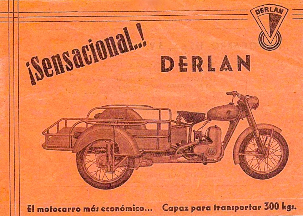 Publicity for the Derlan Motocarro. This photo of a beautifully restored Derlan 125cc motocarro was supplied by the Derlan & Boar Facebook page.