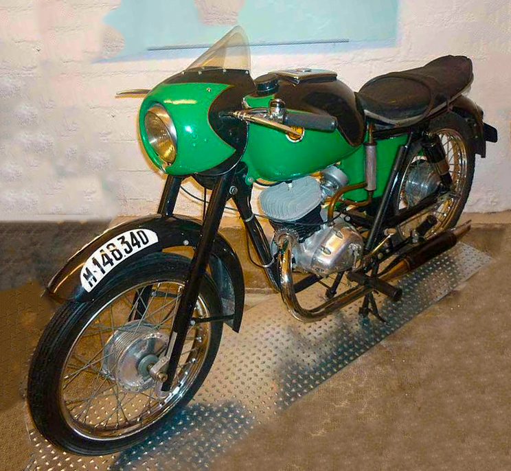 In 1956, the company changed its name to Industrias Dami and decided to produce a new 125cc model. The 125cc (55 mm x 52 mm = 125.5cc) two-stroke, air cooled engine was believed to have been sourced from Rekord** and based on the unit fitted to the short-lived Pony brand. The engine claimed an output of 8.5 HP @ 5,000 rpm.