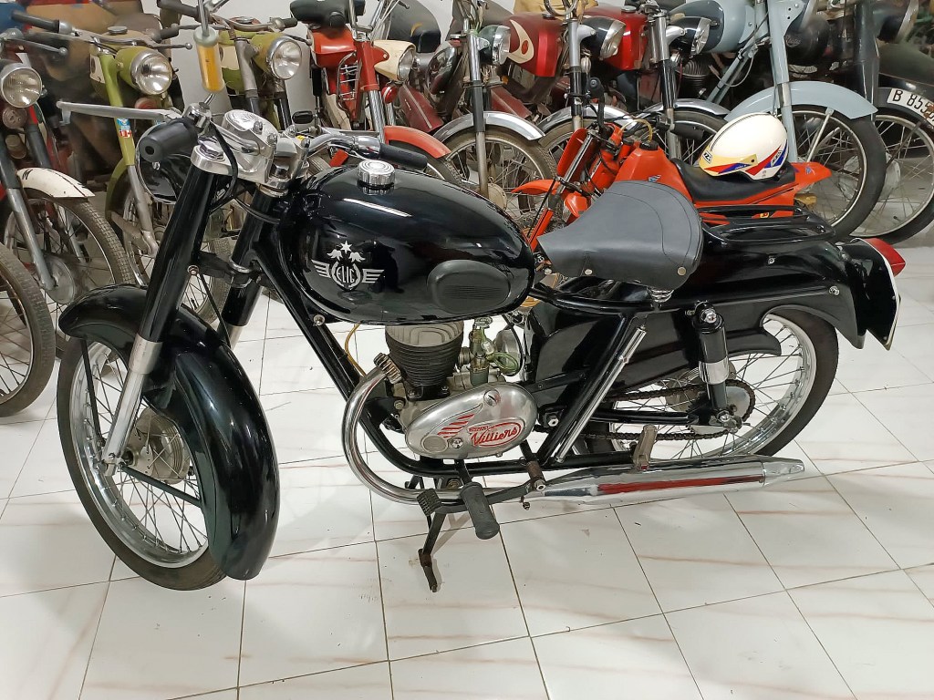 This unrestored, 1953 Elig 125cc was part of a display of the Sala Santy Collection and is an early example of the first Elig motorcycles, as indicated by the plunger rear suspension.