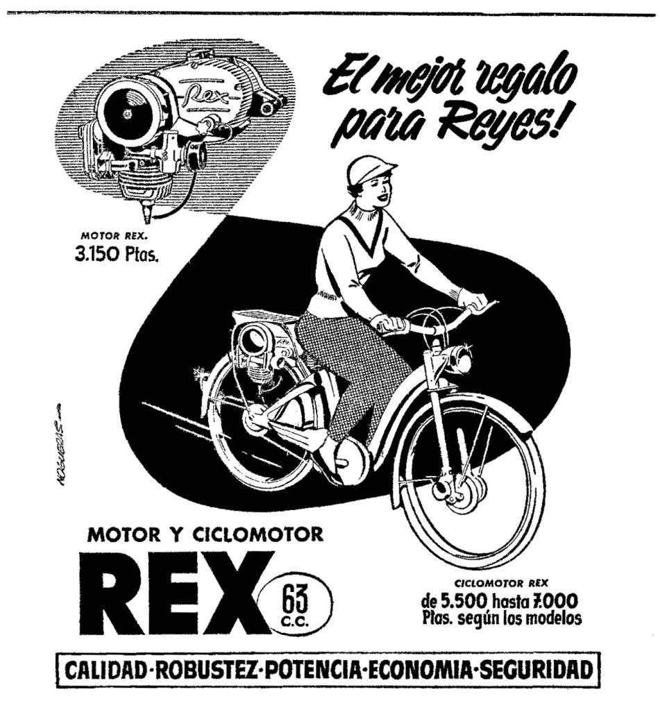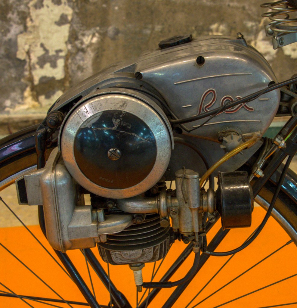 The Rex auxiliary motor incorporated a 63cc engine that developed 1.2 CV at just under 3,000 RPM. It was very popular, particularly in the Barcelona area where it was manufactured and had a reputation for reliability and frugality as it could cover 100 kilometres on less than 2 litres of fuel.