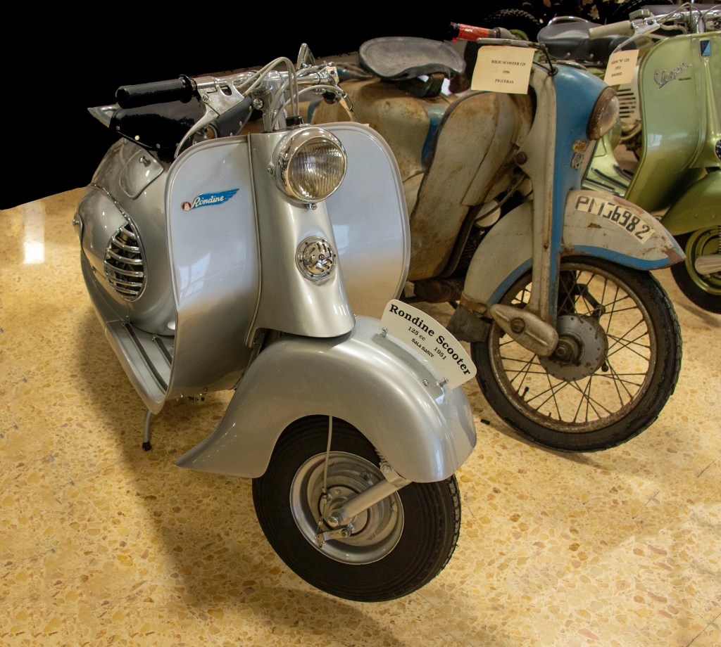 This 1951 125cc Rondine Scooter is part of the Sala Santy Collection, displayed in Riola in 2024.
