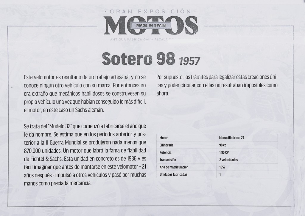 This motorcycle was photographed at the Museo de la Motocicleta Española, 28802 Alcalá de Henares (Madrid) and this is their Data Sheet.